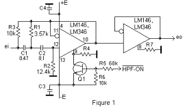 這里的運(yùn)算放大器是一個(gè)可編程運(yùn)算放大器,具有一個(gè)灌入設(shè)置電流 I set(即通過設(shè)置電阻R4流入運(yùn)算放大器的電流)。LM146和LM346就是這種類型的運(yùn)算放大器。